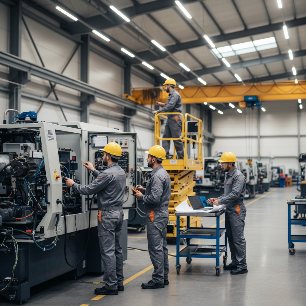 Leistungsspektrum Industriemontagen MaschinenverlagerungenDemontage und Montage von ProduktionsanlagenMontage und Inbetriebnahme von NeuanlagenTransport / FrachtabwicklungFachgerechte Maschinenverschrottung mit Nachweis bei ausgesuchten EntsorgungsbetriebenAnschluss der Ver- und Entsorgungsleitungen, Elektrik Jetzt Anfrage stellen Instandhaltung Bereitstellung von qualifiziertem Personal zur Überbrückung von KapazitätsengpässenWartung und Instandhaltung partiell oder ganzheitlichUnterstützung bei Inspektion, Wartung und ReparaturAustausch von Verschleiß- und GeräteteilenVorbeugende Wartung 24/7Unterstützung bei Revisionen Jetzt Anfrage stellen Montage-Unterstützung Vormontagen aller ArtDe- und Remontagen von Regalen Jetzt Anfrage stellen Technischer Standortservice Technische Reinigung von Maschinen und AnlagenFeinstaubreinigung FilterwechselHallenböden ReinigungTrockeneisreinigungDruckluft Leckage Ortungen Jetzt Anfrage stellen Service Maschinenbau Unterstützung bei Maschinenaufbauten bei Ihren Kunden Jetzt Anfrage stellen Produktionservice Mechanische Nachbearbeitung von SerienteilenQualitätsprüfungen und -messungen100% Kontrollen Jetzt Anfrage stellen